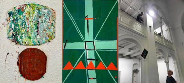 Banner: Paintings by Scott Shepard and Andrew Zarou, as well as the two artists hanging work at Bethanien Studio 1 in Berlin. (photo by Johannes Regin)