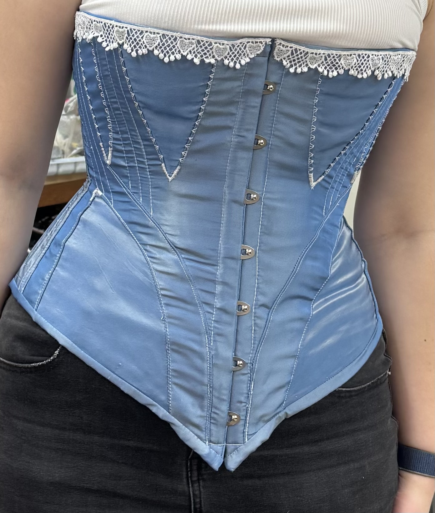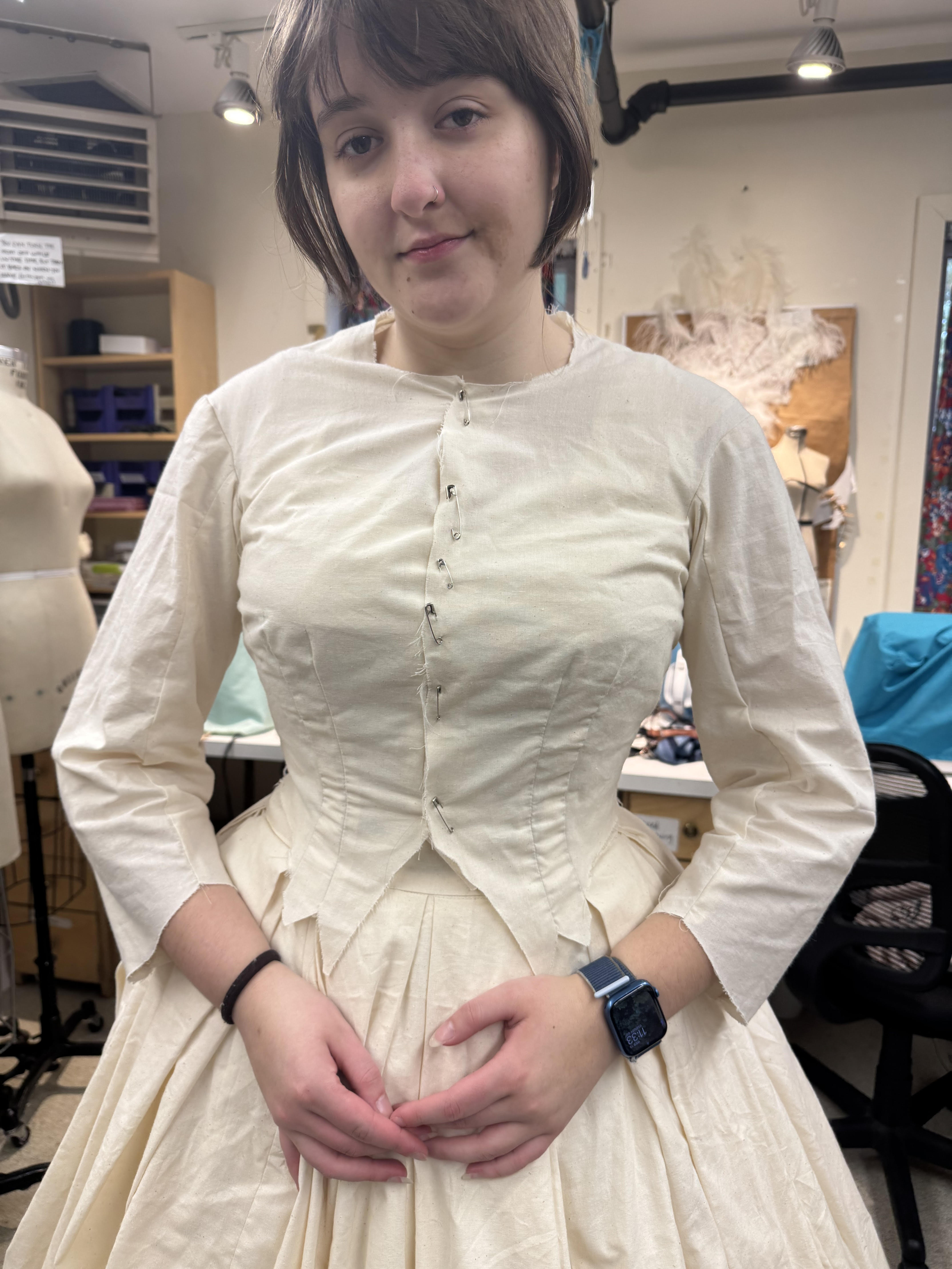 Costume Shop Supervisor Julia Whalen has been instrumental in helping me with this endeavor. When I was working on my corset, she was very helpful, as she has experience with corsetry. She’s also just fun to talk to and work with. I’ve never left a meeting with her without laughing at least once.